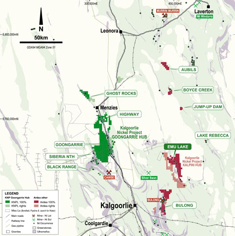 Ardea’s KNP tenure covers extensive zones of ultramafic stratigraphy which hosts the KNP nickel laterite resources. This same tenure is highly prospective for both Kambalda style komatiite lava flow and Nova-Julimar style intrusive related nickel sulphide mineralisation. It is important to note that any nickel sulphide discovery has the potential to be processed supplementary to laterite mineralisation through the autoclaves planned for Goongarrie.