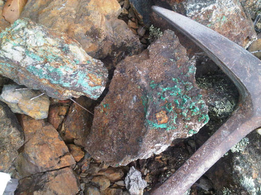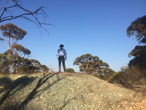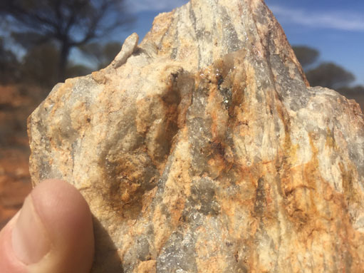 Gossan outcrop located at the Binti Gossan target whilst surveying the proposed diamond drill collars -