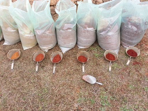 Self rehabilitation historic drill lines at Goongarrie; note dark "pea" gravel -